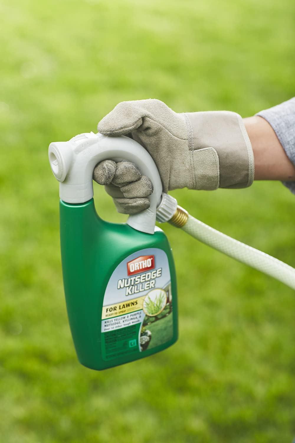 Are you tired of bothersome weeds overtaking your lawn? Ortho Nutsedge Killer for Lawns Ready-To-Spray selectively controls tough weeds like purple and yellow nutsedge (nutgrass), kyllinga, wild onion and garlic, broadleaf plantain, purslane, redroot, pigweed, dandelion, spurge and other listed annual, biennial, and perennial broadleaf weeds. It can be applied on a great variety of Northern and Southern grass types. This no-mix, ready-to-spray formula will help kill pesky weeds, not your lawn.