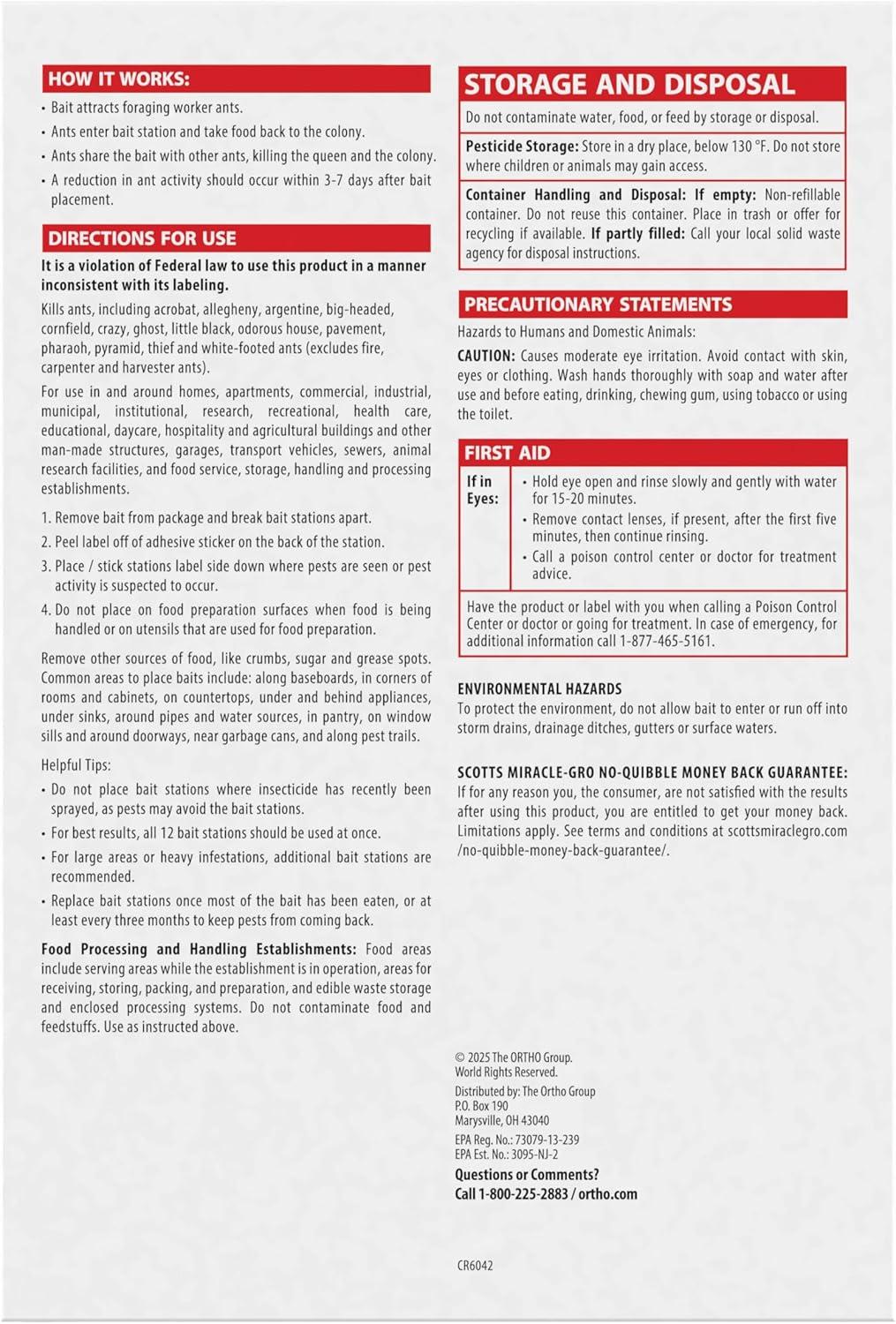 This package of Ortho Orthene Ant Killer Ant Bait comes with 12 ant bait stations